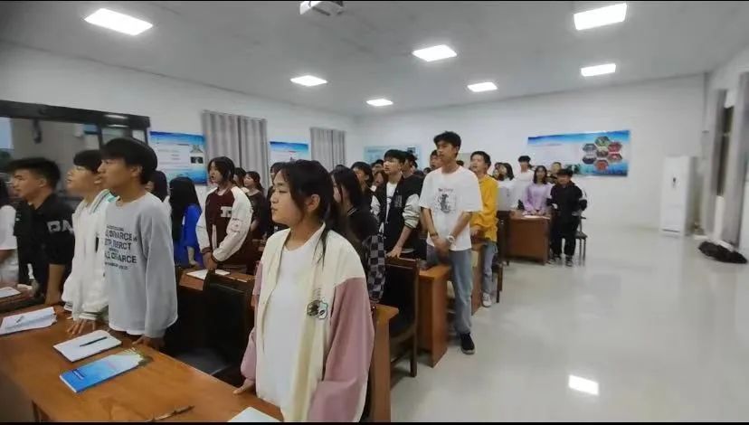 第一項(xiàng):全體起立,奏唱國(guó)歌、放共青團(tuán)團(tuán)